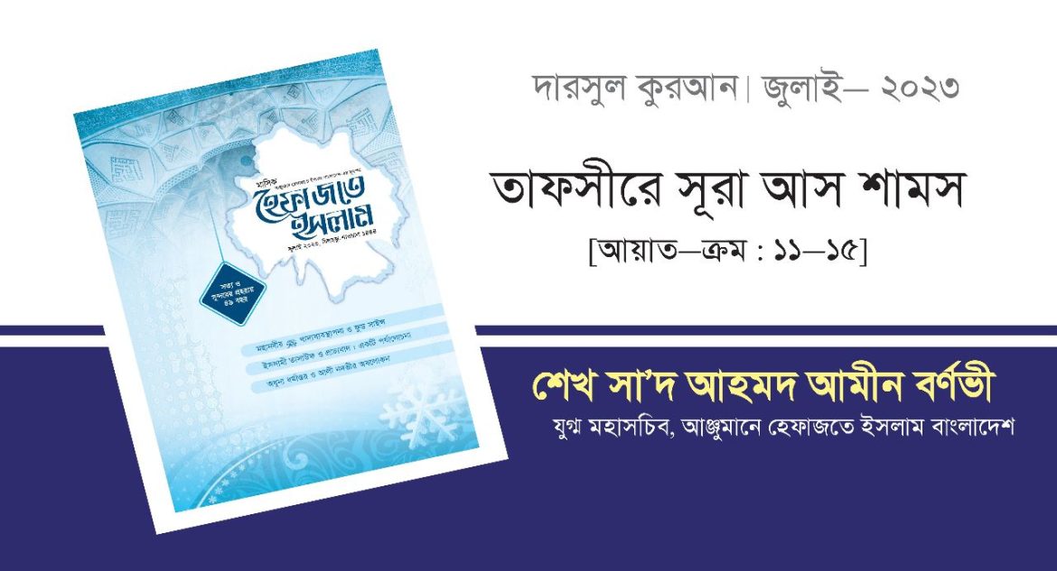 এরপর আলোচনা এসেছে সামুদ জাতির ইতিহাস নিয়ে। কিভাবে তারা তাদের রাসূলকে মিথ্যাবাদী সাজালো, ভয়-ভীতি প্রদর্শন করলো, আল্লাহর পক্ষ থেকে প্রেরিত উটনীকে কিভাবে পা কেটে দিয়ে হত্যা করলো, তার পরিণতিতে কিভাবে তাদের ওপর ধ্বংস ও সামগ্রিক অধঃপতন নেমে এলো। এগুলো সবই ছিল সে হতভাগাদের ব্যর্থতা ও ধ্বংসের উদাহরণ, যারা পাপাচারী তাদের পাপ কাজ করার জন্য আল্লাহ তাআলা কিছু ঢিল দেন, যার কারণে বহু পাপ কাজে তারা লিপ্ত হয়ে যায়। আল্লাহর ভয়-ভীতিকে তারা শিকেয় তোলে রাখে, যেমন এই সূরার প্রথম অধ্যায়ে বলা হয়েছে, ‘অবশ্যই সাফল্য লাভ করলো সে, যে নিজেকে পবিত্র রেখেছে এবং ব্যর্থ হলো সে, যে তার নফসকে কলুষিত করেছে।