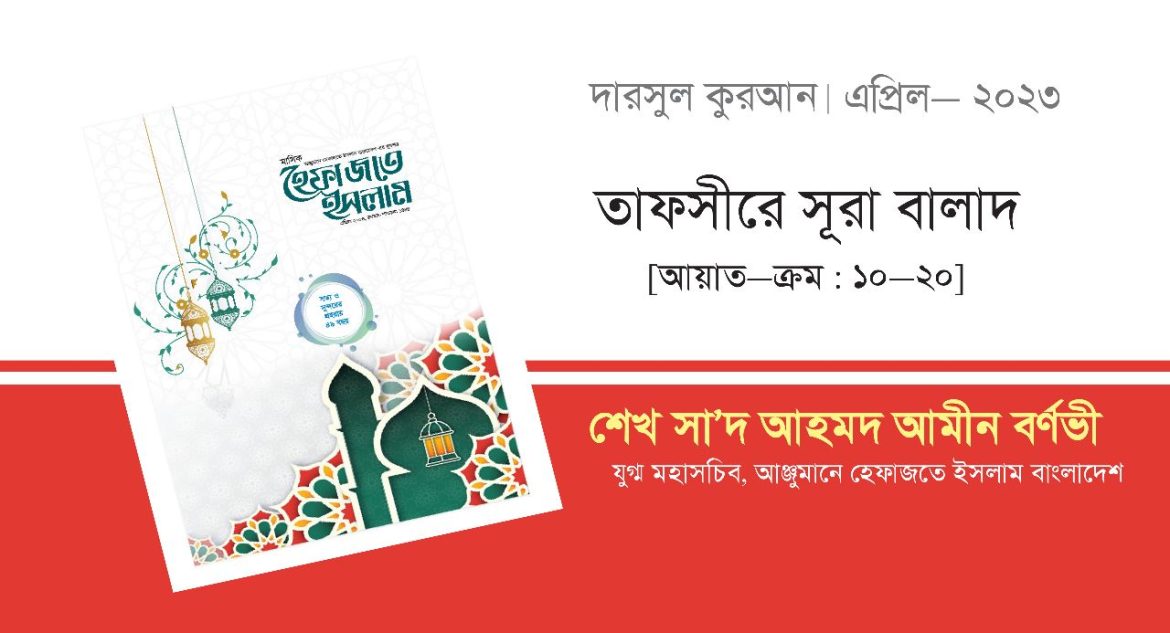 ছিন্নবস্ত্র ও অসহায় মানব সন্তান গোলামীর জিঞ্জীর পরে তোমার দুয়ারে কী করুণ অবস্থায় দাড়িয়ে আছে। চেয়ে দেখো একবার হে সভ্যতাগর্বী মানুষ! মানবতার এ নিদারুণ ব্যথা দূর করার জন্য তুমি কি এগিয়ে আসবে না? সৃষ্টিকর্তার রহস্য প্রত্যাশী হে মুমেনরা! বস্ত্রহীন সেই অসহায় মানুষকে গোলামী থেকে মুক্ত করা, অন্নকষ্টে জর্জরিত বুভুক্ষু আদম সন্তানকে অনুদান করা, ব্যাধিগ্রস্ত, রোগক্লিষ্ট, শক্তিসামর্থহীন, পথের কাংগাল, যারা সকল যামানায় বিত্তশালী ও যুলুমবাজদের হিংগ্র ব্যবহারে নিষ্পিষ্ট, তাদের উদ্ধারকল্পে এবং মানবতার গৌরবাসনে তাদেরকে পুনরায় সমাসীন করতে তোমরা এগিয়ে এসো। হে মুমেন, মুছে দাও অবহেলিত মানবতার এই নিদারুণ গ্লানি, তবেই তো তুমি রহমানুর রহীমের করুনা ধারা পাবে। মানবতার এই মুক্তি ধারায় যারা সঠিক অবদান রাখতে পেরেছে তাদের জন্য পরবর্তী আশ্বাসবাণী ‘তারপর তারা ওই সকল ব্যক্তির অন্তর্ভুক্ত হয়ে যাবে যারা ঈমান এনেছে এবং পরস্পরকে উপদেশ দিয়েছে, সবর করার জন্য ও যথাযথভাবে দুস্থ মানবতার প্রতি দয়াপরবশ হওয়ার জন্যও একে অপরকে উপদেশ দিচ্ছে।’